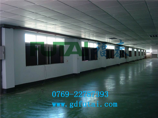 解決方案二:像這類車間用負(fù)壓水簾風(fēng)機(jī)降溫效果很好的,可以調(diào)節(jié)室內(nèi)干燥導(dǎo)致的線絨到處飛舞,增加室內(nèi)濕度更有利于車間環(huán)境的改善,另一面墻上安裝的水簾有很多小孔,室外空氣在大氣壓下自動流入室內(nèi)。因此空氣不斷與室外循環(huán)。如果安裝的合適,室內(nèi)的所有空氣都會參與這個大循環(huán)。因此對于污濁、煙霧、灰塵、異味的房間而言,這種通風(fēng)模式最徹底??紤]到投入成本,有些客戶會僅僅選擇負(fù)壓風(fēng)機(jī),而不安裝降溫水簾。此時風(fēng)機(jī)對面的空氣經(jīng)過門和窗戶進(jìn)入,沒有降溫處理。室內(nèi)空氣流動也會有較好的降溫效果。